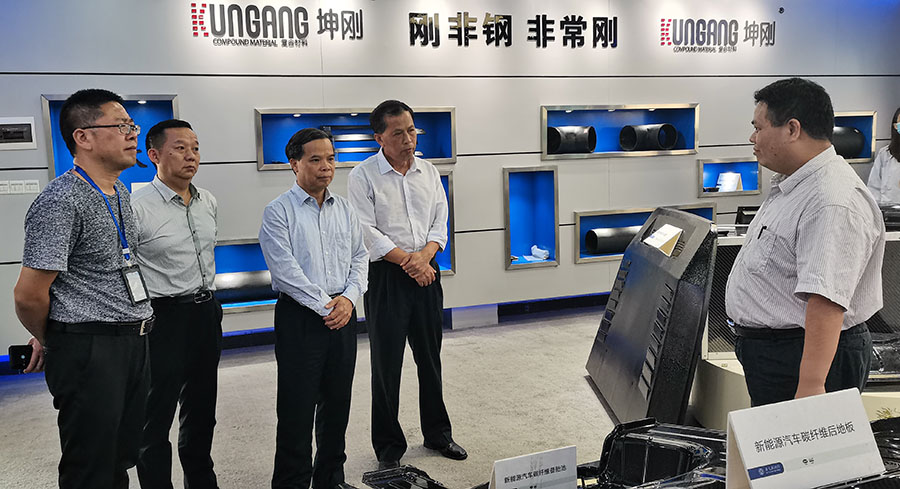 图2:调研组一行参观复合材料汽车零部件智能化成型车间