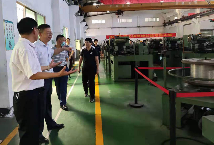 图:温树斌局长(左2)参观汽车雨刮线制造车间