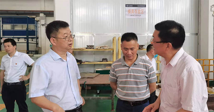 2021年7月13日上午,肇庆市科技局局长温树斌带领局班子成员及各科室负责人莅临亚太调研。董事长朱增余、副总经理罗国伟、复合材料事业部运营总监潘典奇等中高层管理干部热情接待温树斌局长一行。